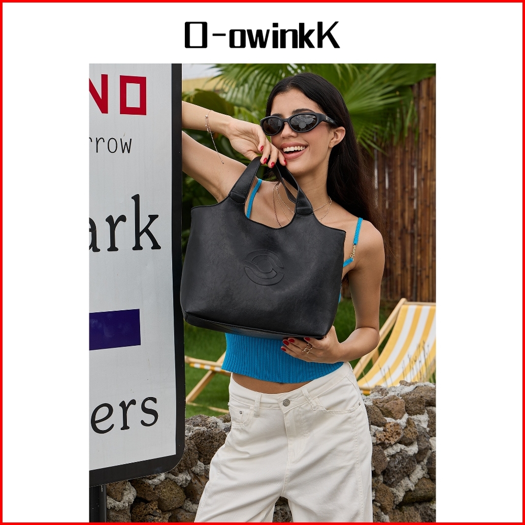 O-owinkk Tas Wanita Tas Tote Rompi Kapasitas Besar Tas Bahu Selempang Gaya Mewah Ringan Dan Retro