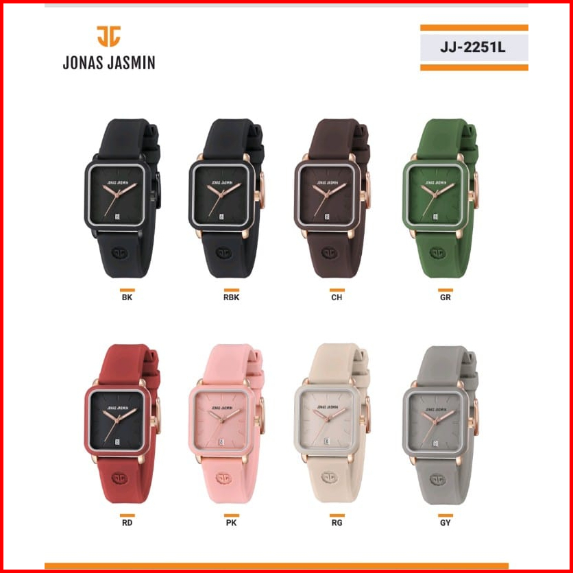 Jam Tangan Wanita Jonas Jasmin -2251 Original Tali Rubber Body Segi Tanggal Aktif