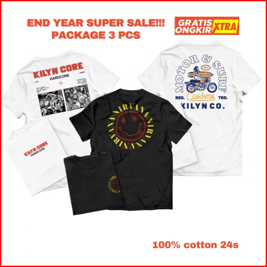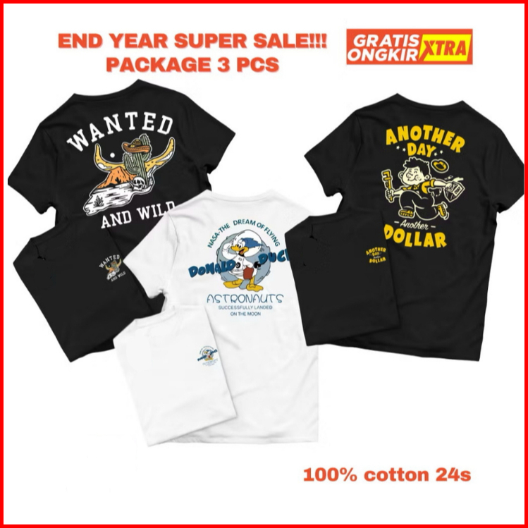 Bosgo Isi 3pcs Kaos Pria Kaos Distro Kaos Oblong Lengan Pendek Bahan Katunpakaian Atasan Tshirt Kaos Bahan Katun Pria