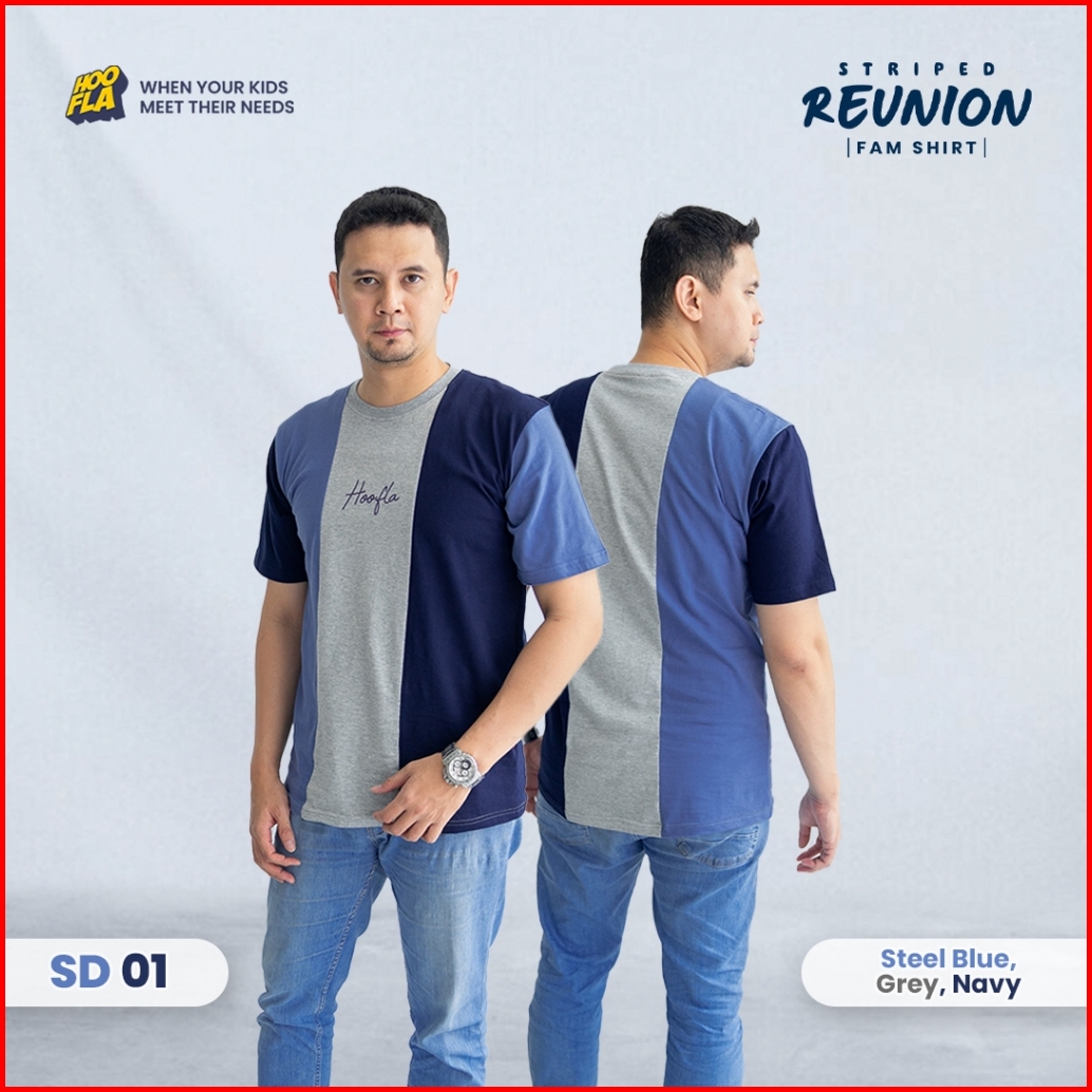 Hoofla Baju Kaos Couple Ayah Ibu Striped Reunion Fam Shirt Steel Blue
