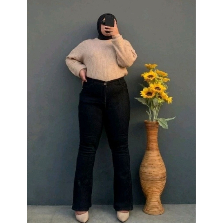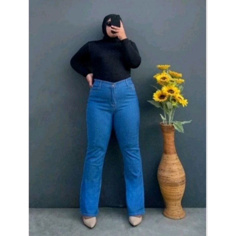 M Jeans Celana Panjang Cutbray Wanita Jumbo Highwaist Big Size Terbaru 31-42