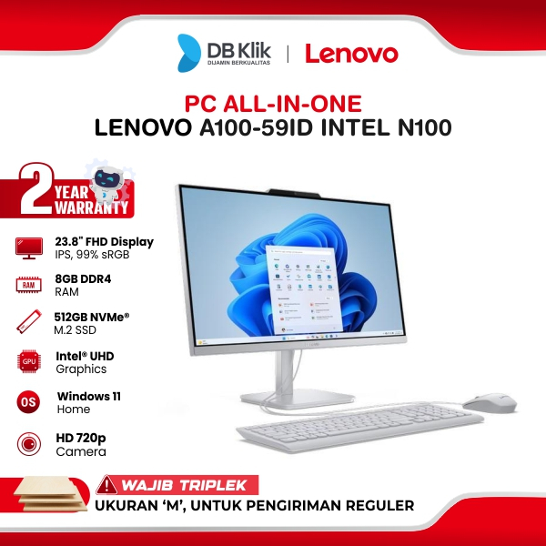 Lenovo PC AIO A100-59ID Intel N100 8GB/512GB Windows 11 Home No OHS 23.8" FHD IPS - Cloud Grey
