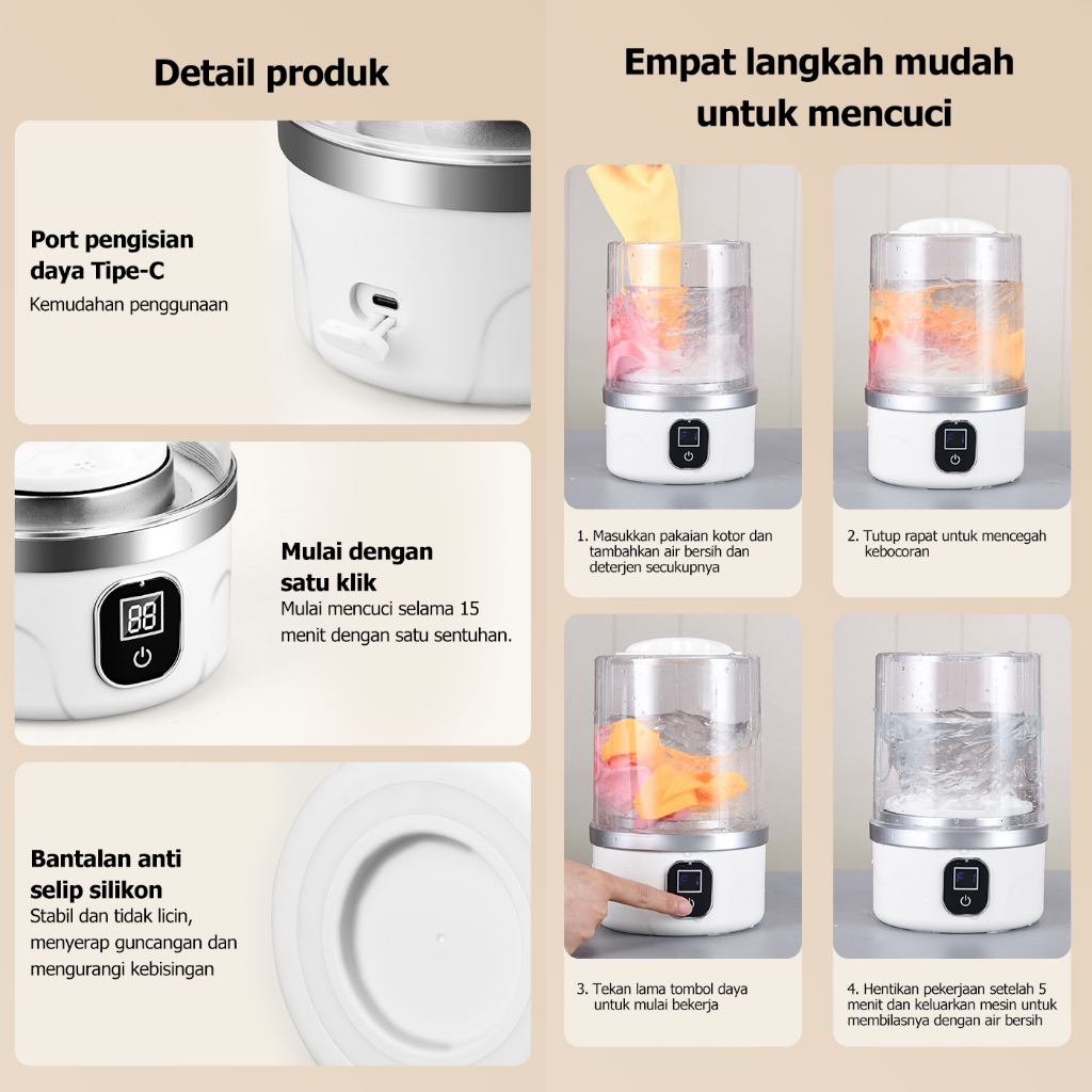 TKTKT 1L mesin cuci mini 2 mode kerja mesin cuci portable nirkabel mesin cuci kecil Gelas Cucian untuk Pakaian Dalam dan Kaus Kaki mesin cuci mini anak kos