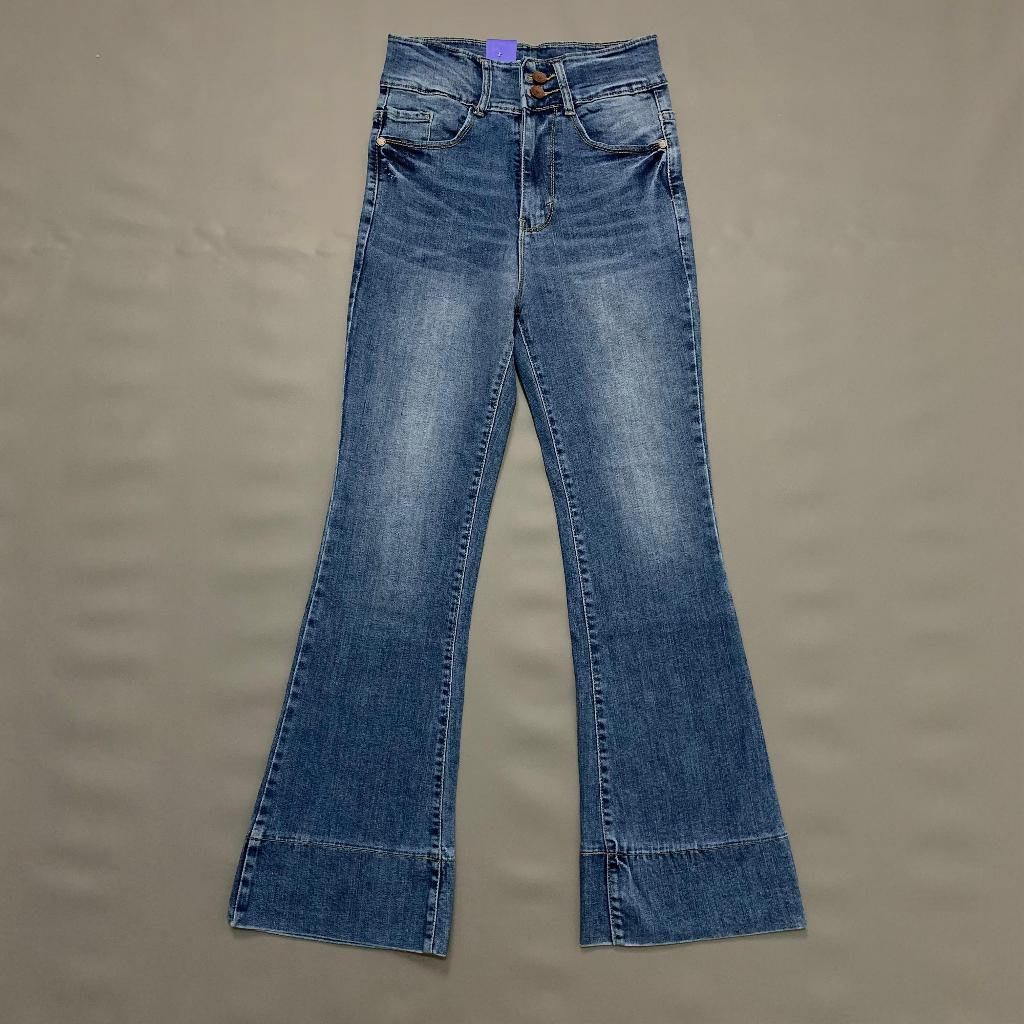 HAZEE - VELISKA | celana jeans cutbray wanita highwaist bahan melar kancing 2 nyaman premium denim