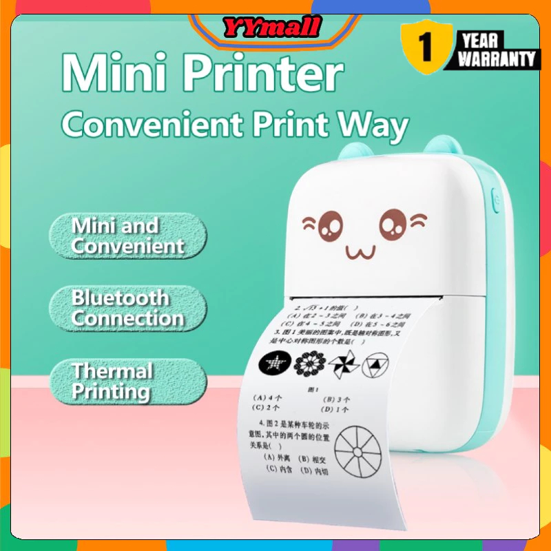 【Barang spot 】 Mini Thermal Printer Bluetooth Printer Portable Tanpa Tinta Thermal Printer Label Receipt Bare Printer