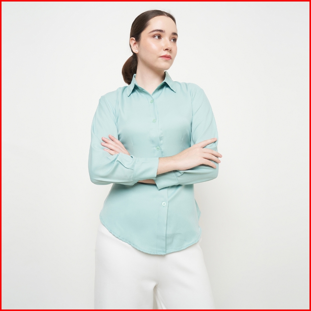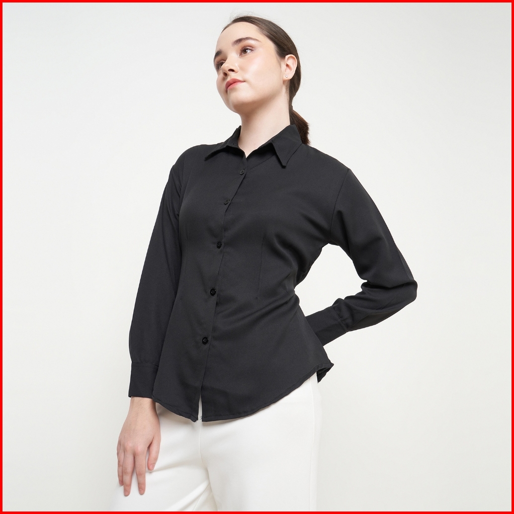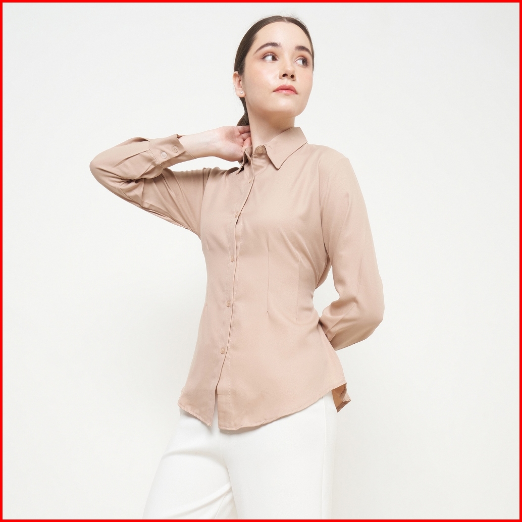 Yuglo - Blouse Kemeja Wanita Kerja Kantoran Cewek Kuliah Kekinian Atasan Kemeja Lengan Panjang