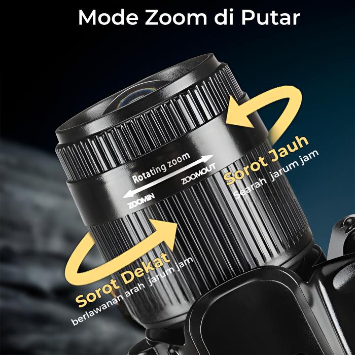 H2S SENTER KEPALA LED LASER ZOOM ROTARY 2 BATERAI 50W 6 MODE WATERPROOF IPX6 HS-U8 - CAHAYA PUTIH U8