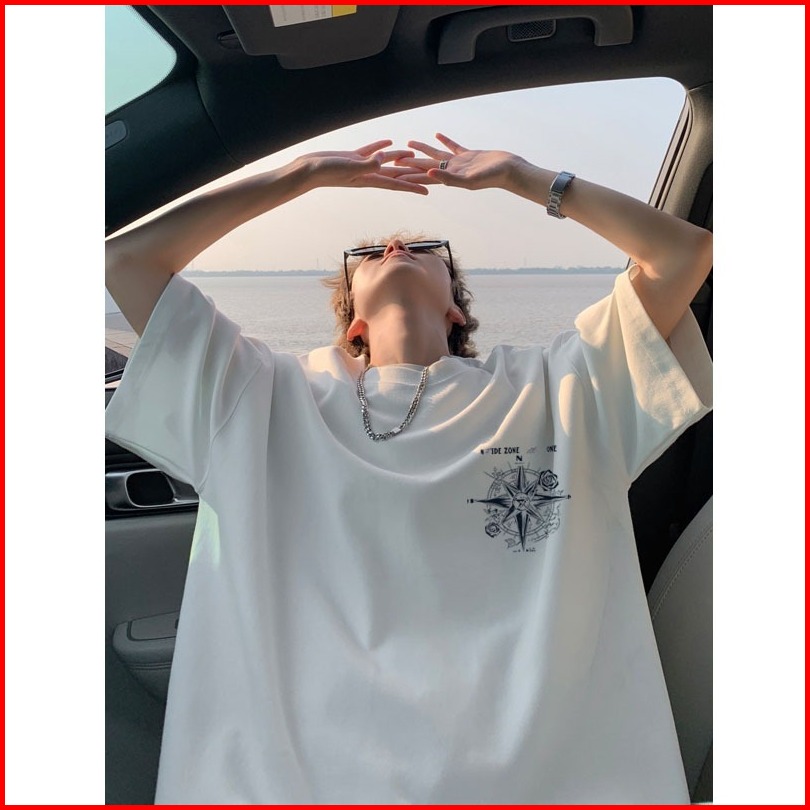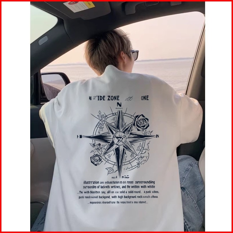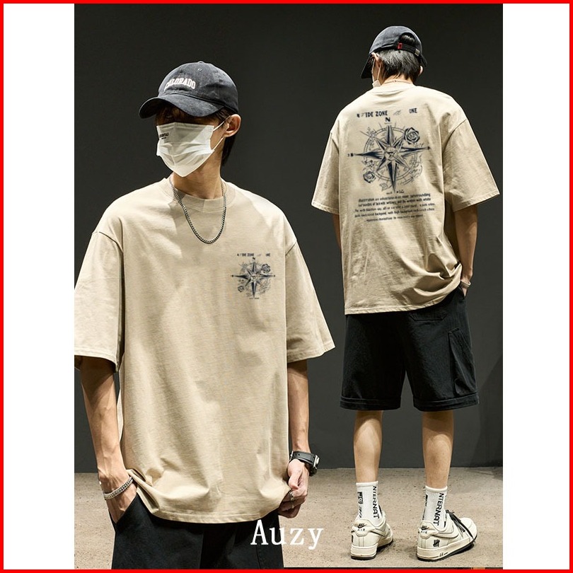 Auzy Bintang Segi Delapan Pencetakan Gaya Amerika Kecenderungan Jalan Kaos Pria Wanita Atasan Lengan Pendek T-shirt Sken