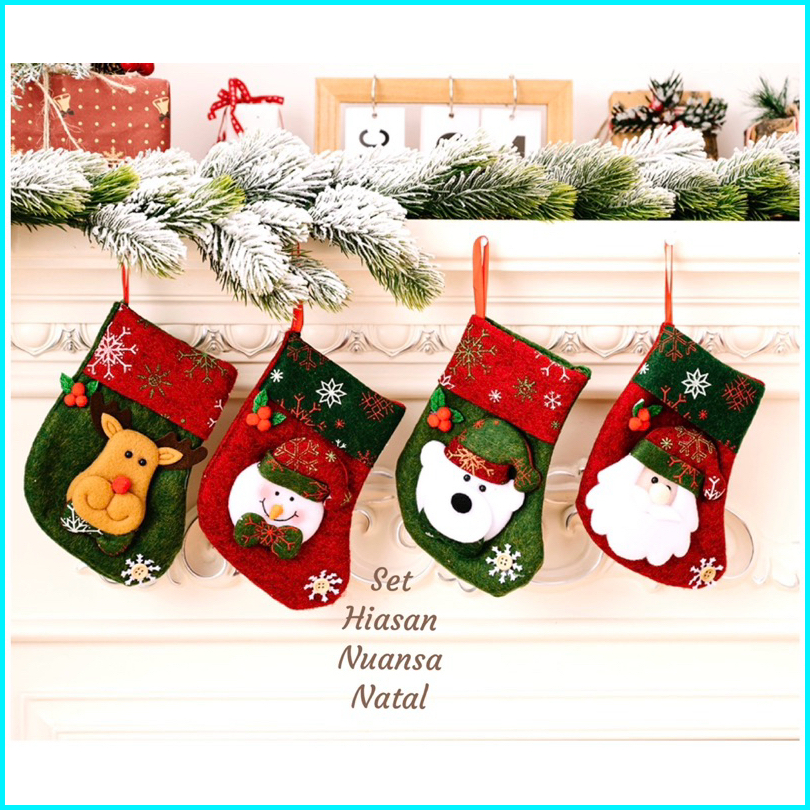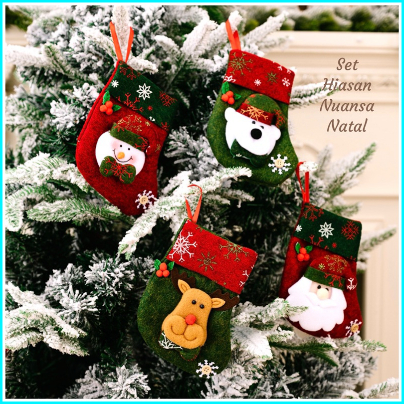 Isi 4 Motif Green Red Hiasan Natal Bentuk Kaos Kaki Santa Christmas Decoration Gantungan Pohon Natal