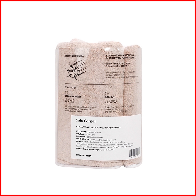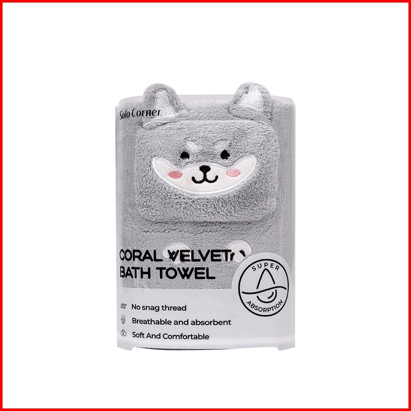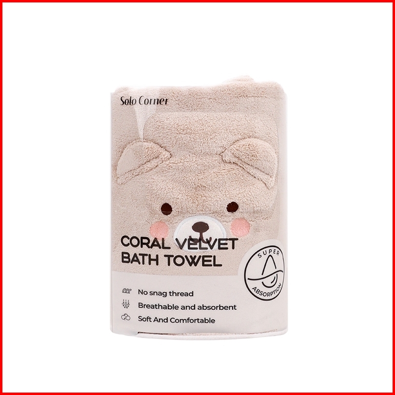 Ohsome - Solo Corner Coral Velvet Bath Towel Handuk Mandi Animal Series