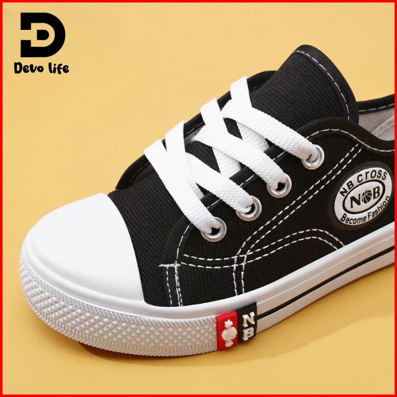 Devo Life - Sneakers Anak Sekolah Low Canvas Sepatu Cewek Cowok Formal Casual Ringan Tali