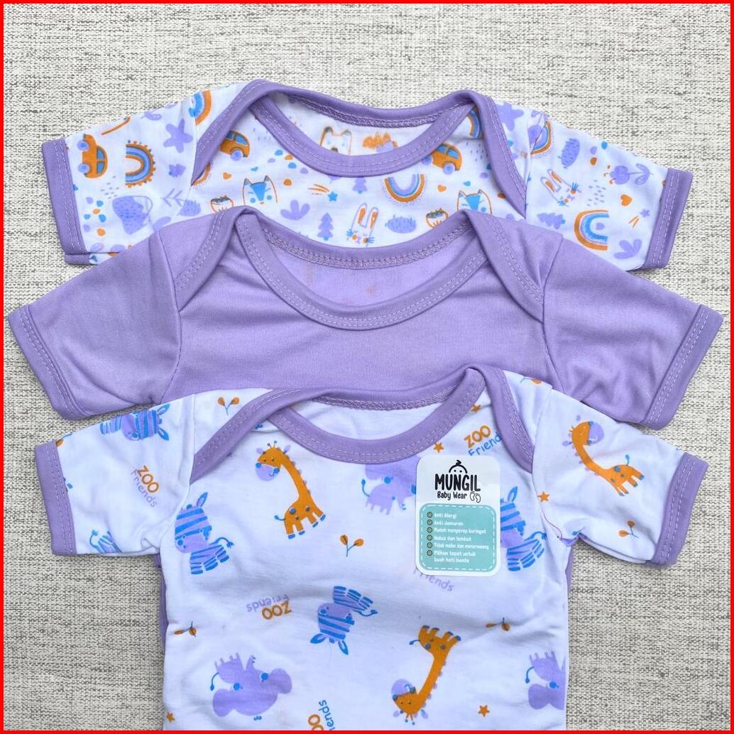 3 Pcs Jumper Bayi Bodysuit Motif Full Sablon Jumper Bayi Series Ungu Newborn Mungil Baby Wear
