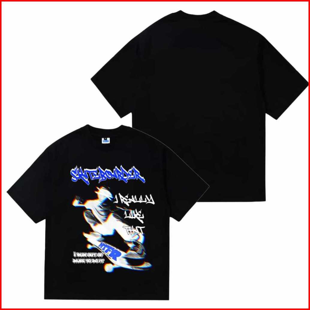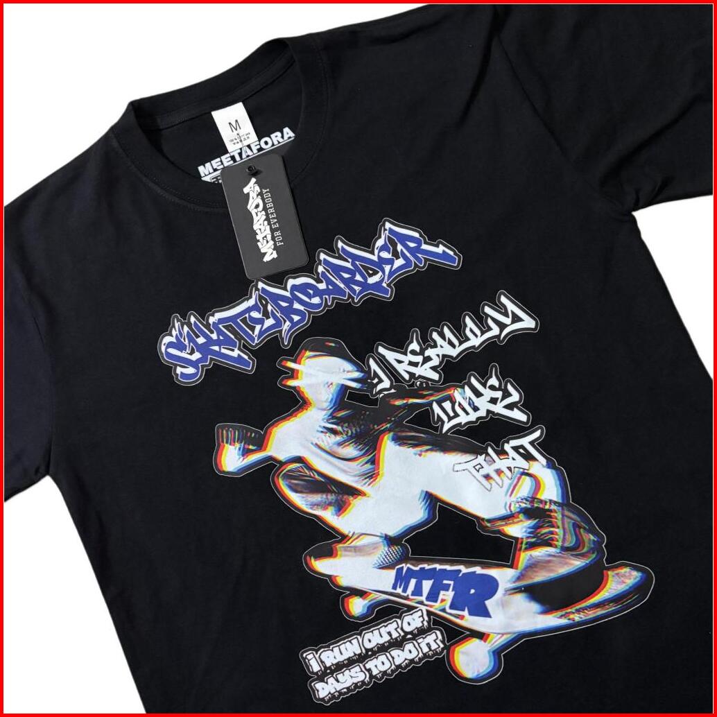 Nebula Tshirt Skateboarder Vintage Kaos Lengan Pendek Hitam
