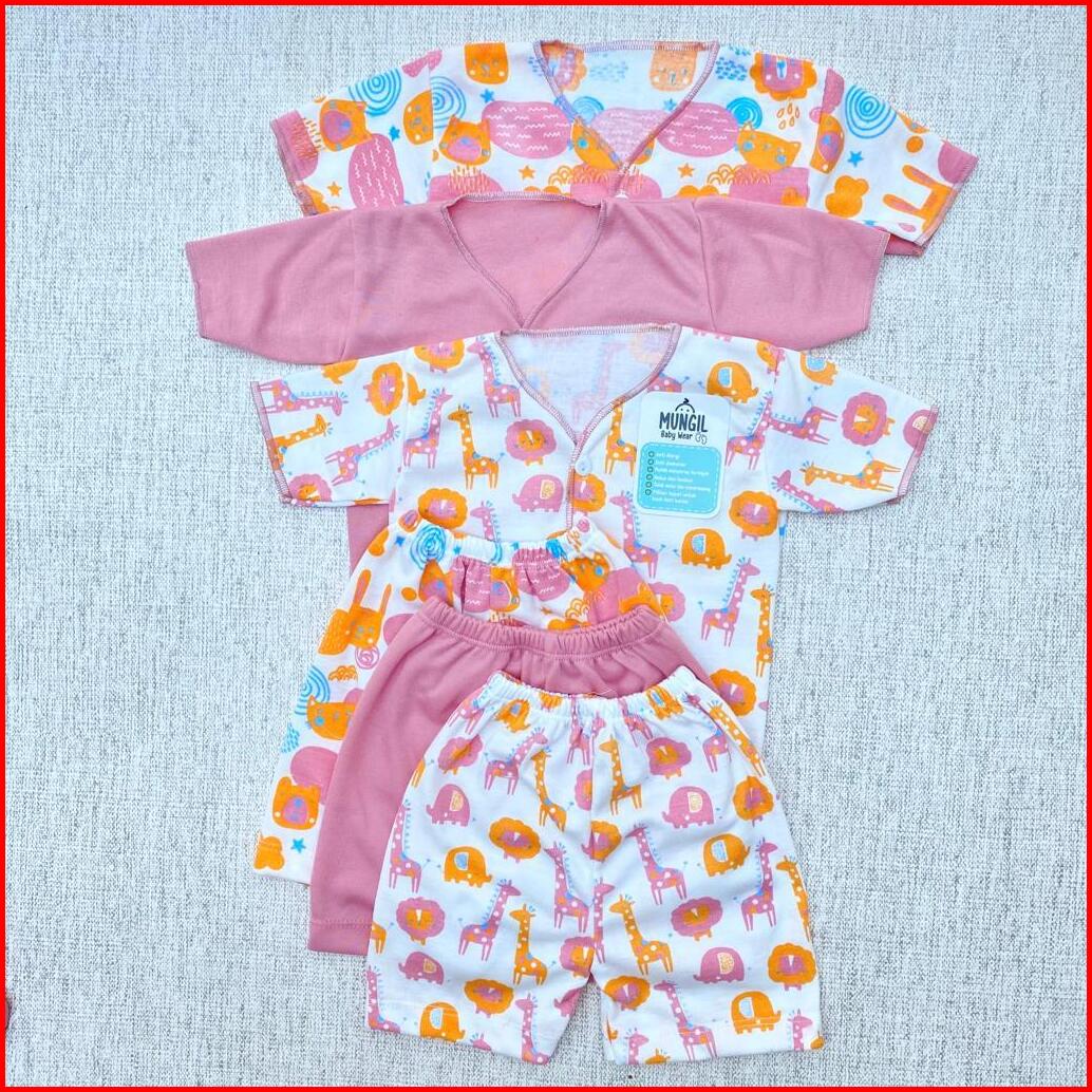 3 Pcs Baju Lengan Pendek 3 Pcs Celana Pendek Baju Bayi Baru Lahir Series Dusty Mungil Baby Wear