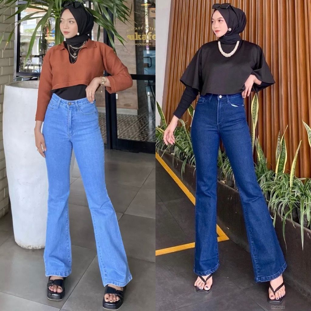 Highwaist Jeans Cutbray Celana Cutbray Wanita Cutbray Stretch Gaya Retro Kekinian