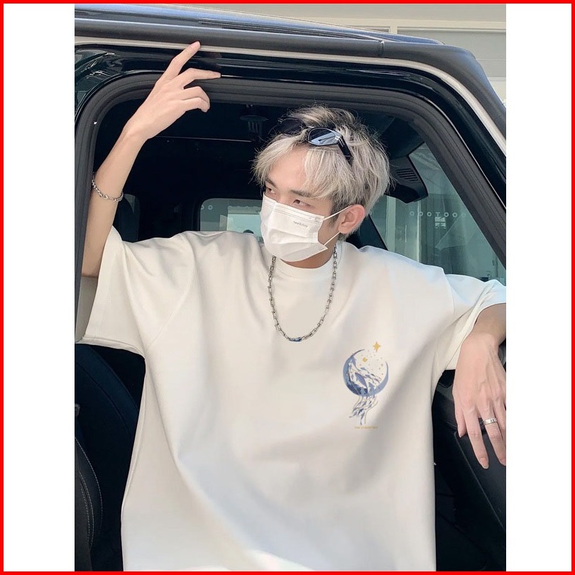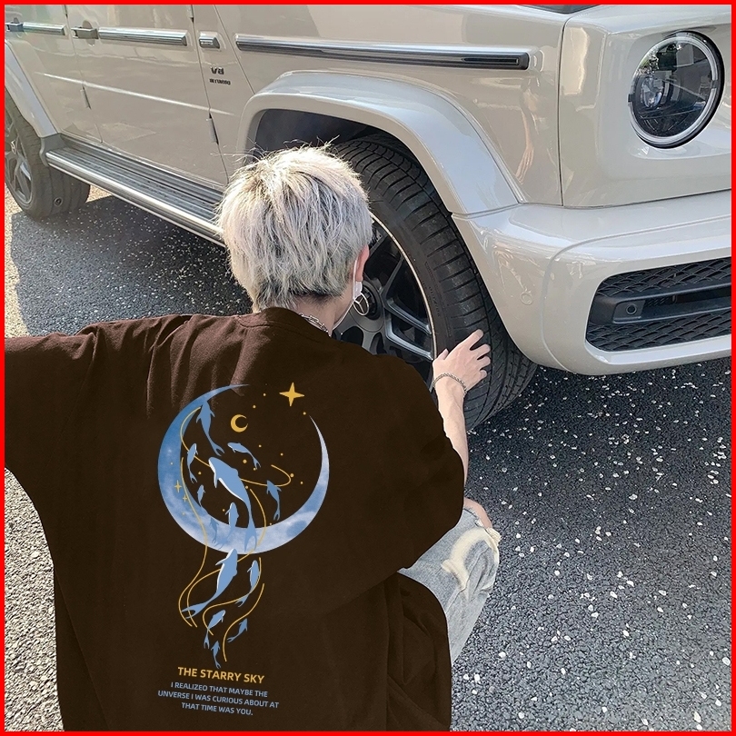 Auzy Kaos T-shirt Pria Oversize Cartoon Moon Dolphin Kaos Pria Distro Original 00 Premium Longgar Street Style Kaos Puti