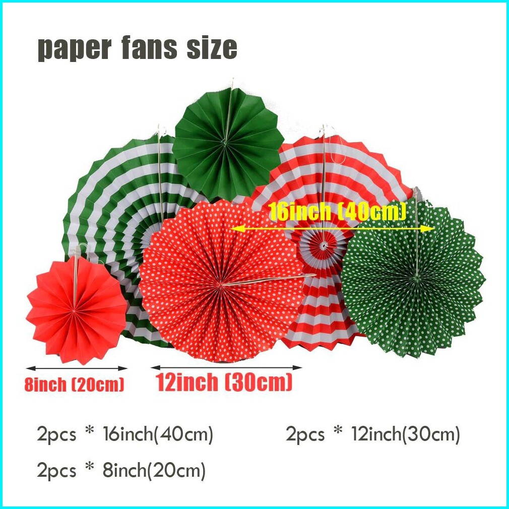 Dekorasi Pesta 6 Pcs Paper Fan High Quality Natal Merah Hijau Merah Paperfan Biru Pink Dirgahayu Ri