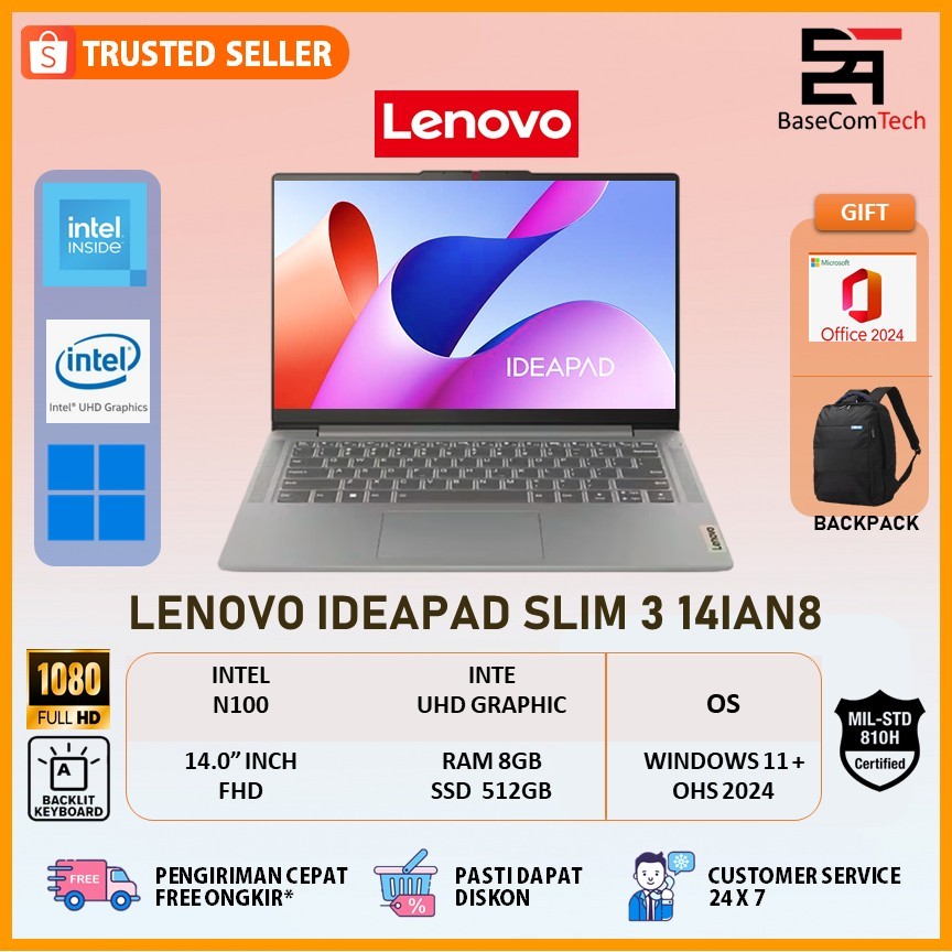 Lenovo Ideapad Slim 3 Intel N100 RAM 8GB/512GB 14.0 inchi FHD Windows 11