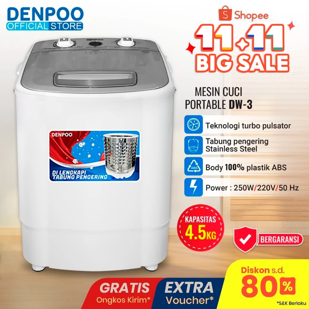 Mesin Cuci Portable Mini DW 3, Kap 4.5 Kg