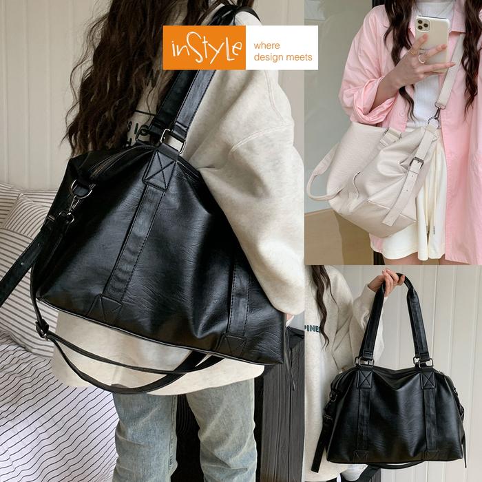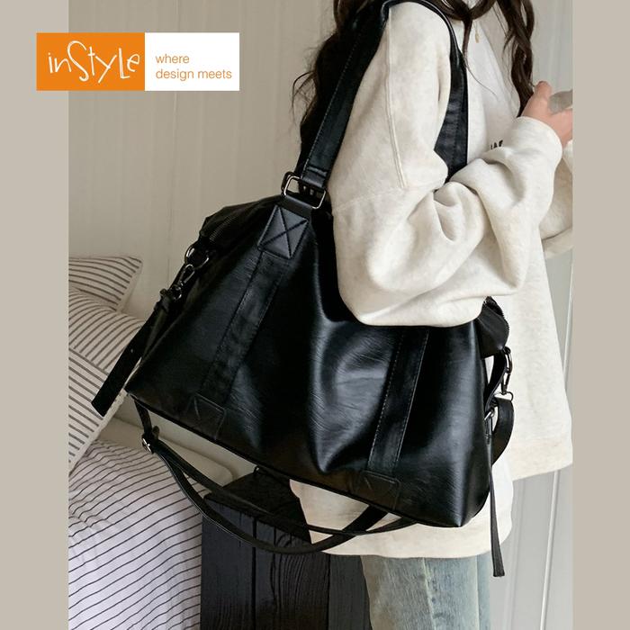 TAS BAHU SELEMPANG WANITA KOREAN SHOULDER BAG BESAR KULIT PU LEATHER LEMBUT (T2-051) - HITAM