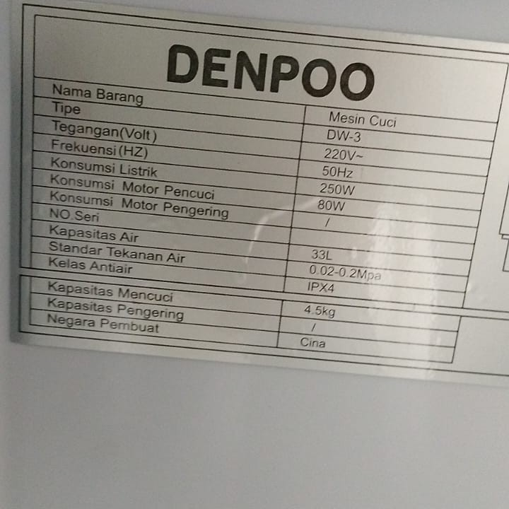 DENPOO DW-3 Mesin Cuci Portable 4.5 KG (Low Watt)