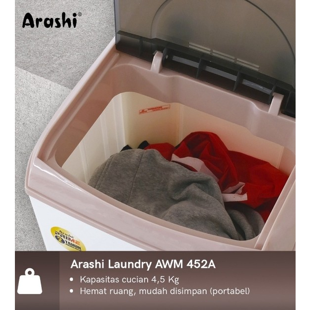 ARASHI Laundry AWM 452A Mesin Cuci Mini Portable 4.5 KG AWM452A Garansi Resmi