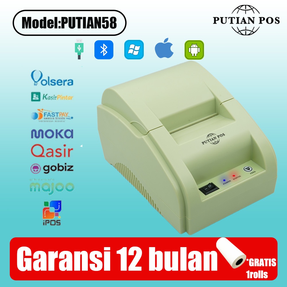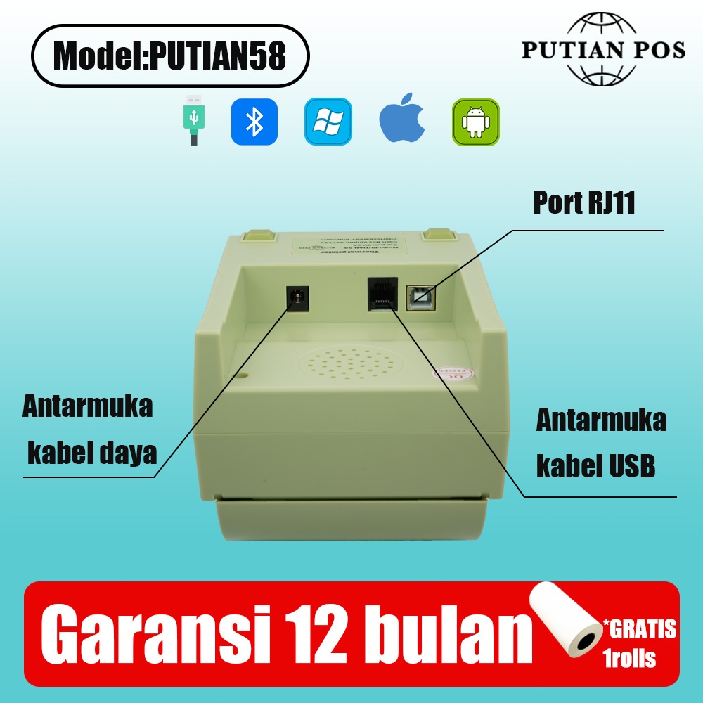 LUTIAN POS Desktop Thermal Printer PUTIAN 58 rinter Tanda Terima (Bluetooth+USB)