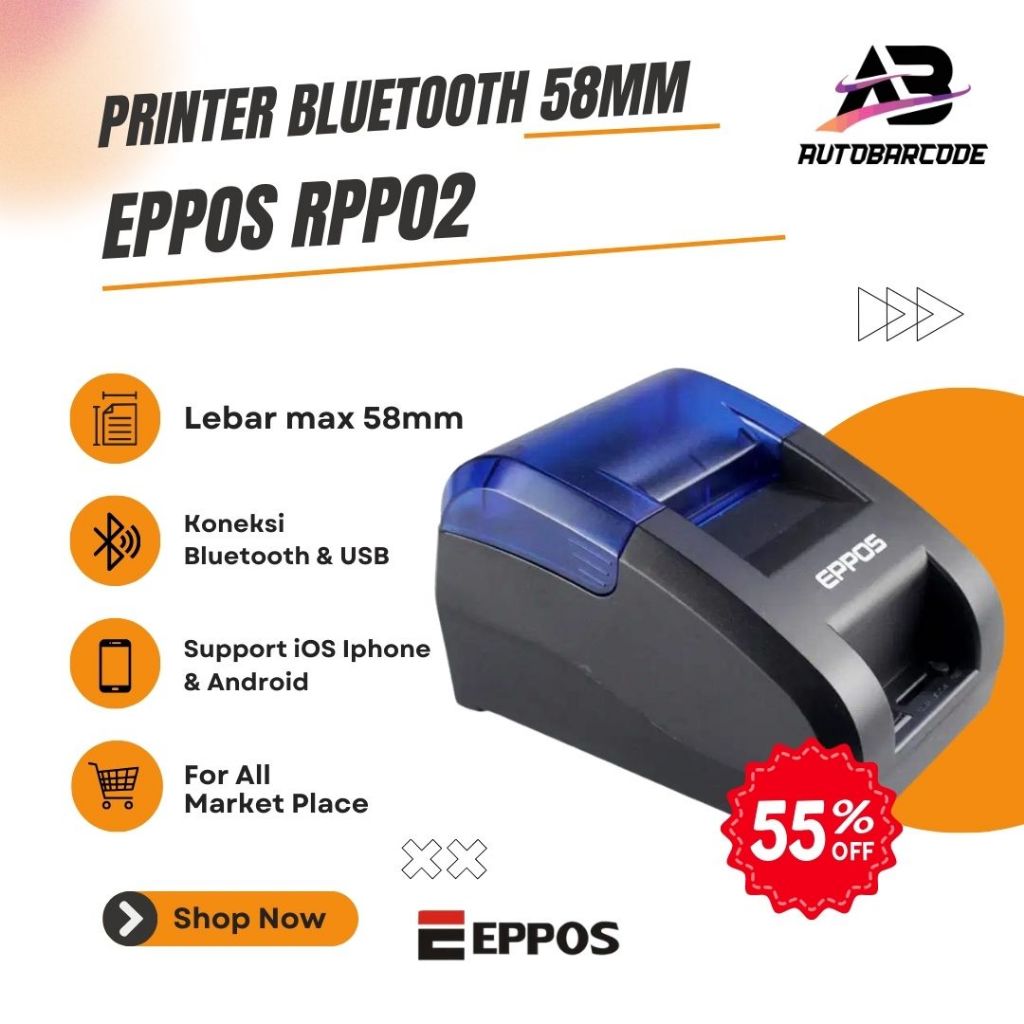 Eppos RPP02 Printer Kasir 58MM Bluetooth Usb C-58BT Cafe Resto Minimarket Moka Pos Rpp02n 2058 C 58