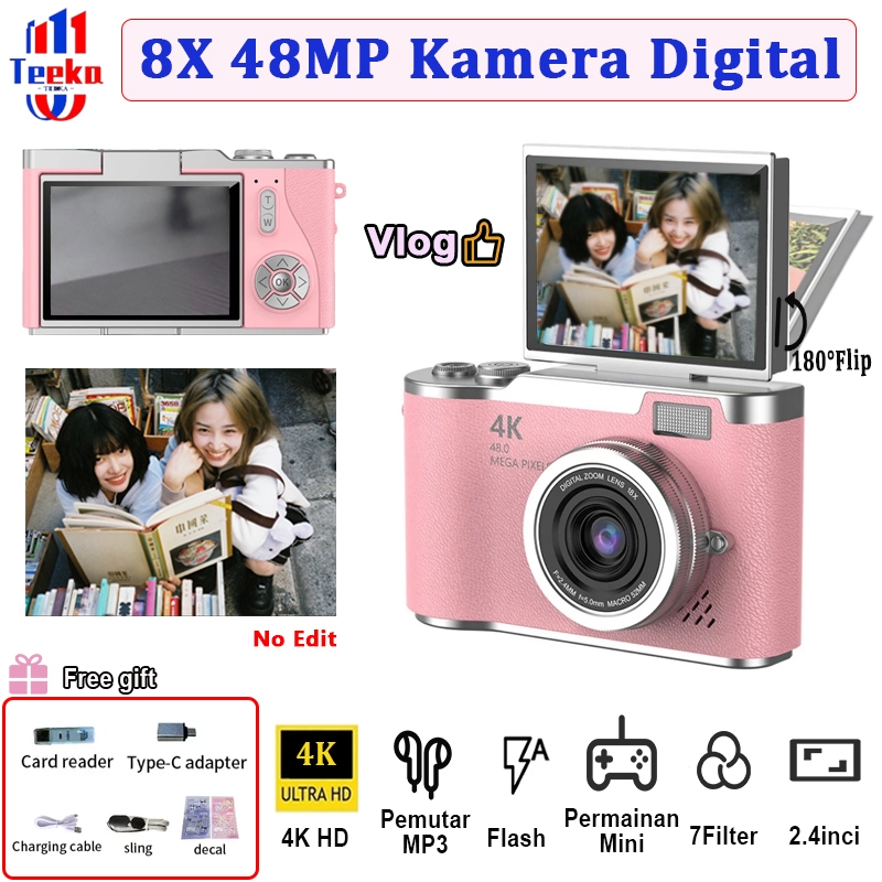 TEEKA [LK007] Flip Screen 48MP 8X Digital Camera 4K Video 8X Digital Zoom With Selfie Connection Support for Beginner Gift【With 64GB Card】