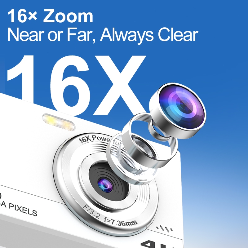 TEEKA [H28] Kamera Digital Murah 64MP 16X Portabel Kecil Layar Digital Zoom16X Kamera Digital Deteksi Wajah Untuk Pelajar