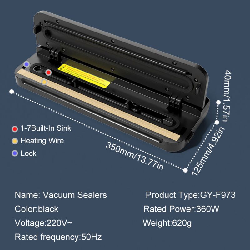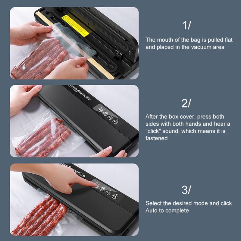 (Free 10pcs Vacuum Bags) Vacuum Sealer Makanan Basah Kering Otomatis 60kpa Frozen Food Mesin Vakum Vacum
