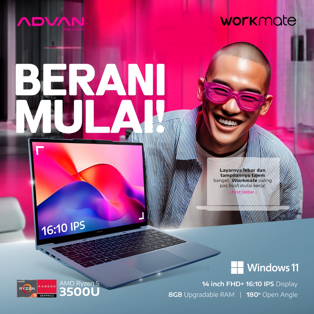 [Mall] Laptop ADVAN WorkMate | AMD Ryzen 5 3500U / Intel i3-1215U | 14 Inch FHD+ 16:10 IPS | 8GB/256GB Upgradable