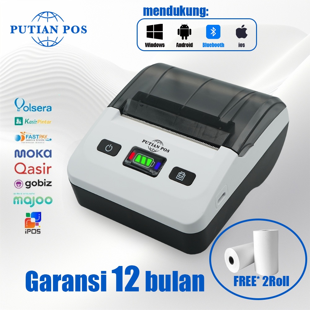 Printer Termal Bluetooth Portabel PUTIAN POS 80mm PUTIAN802 Printer Label Stiker (dengan Baterai)