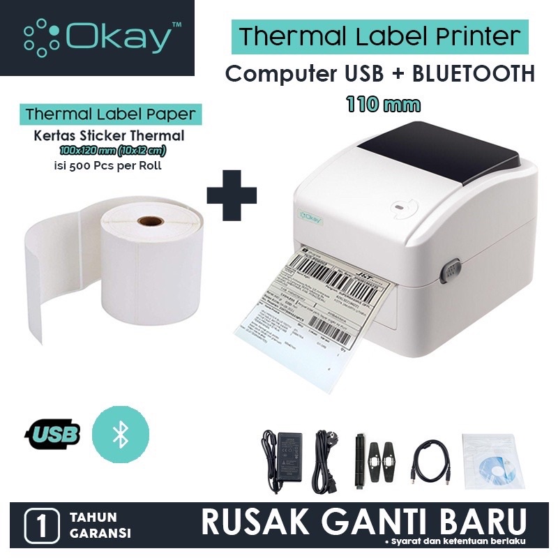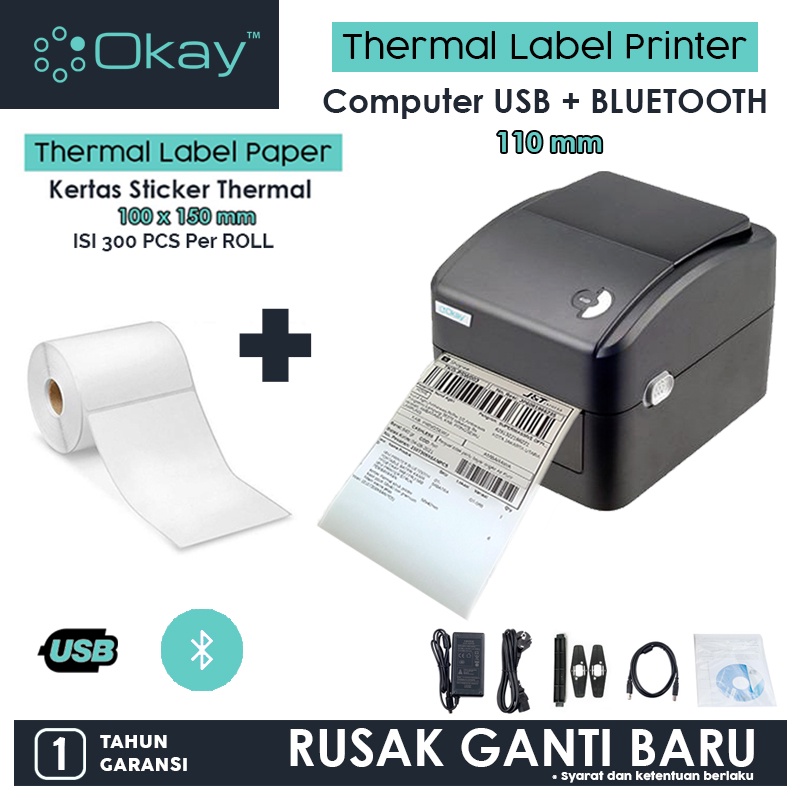 OKAY D100 BW BL Printer label pengiriman bare thermal Max Sticker A6 110mm Printer Resi