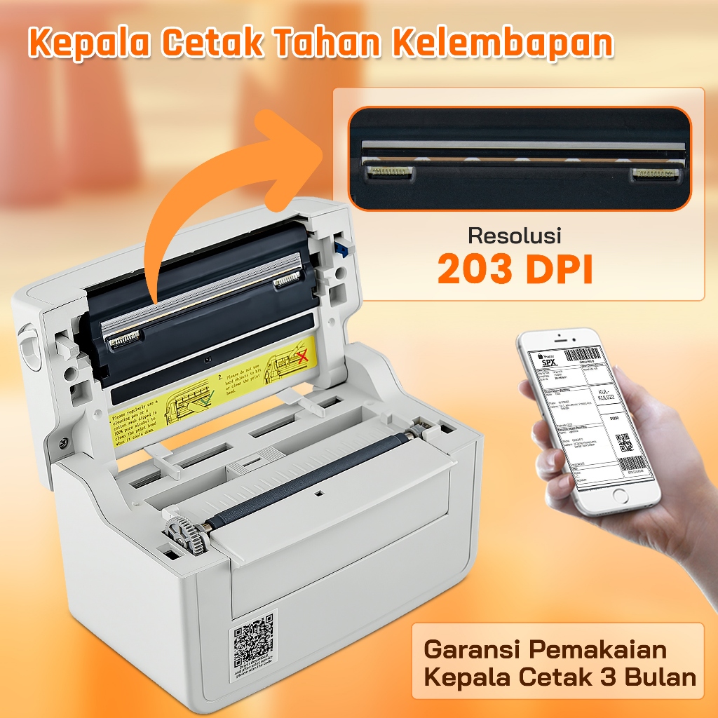 PRINTER THERMAL CETAK RESI LABEL CEPAT JELAS USB+BLUTOOTH MUDAH DIGUNAKAN