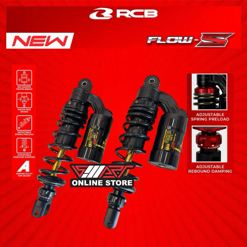 SHOCK RCB FLOW S (NEW) YAMAHA NMAX OLD 330MM , NEW NMAX AEROX 305MM , NMAX TUBRO 320MM BLACK PREMIUM