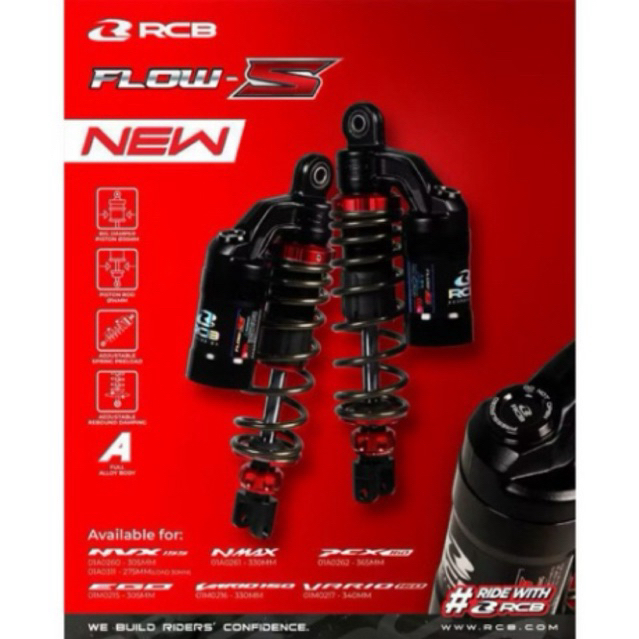 RCB FLOW S 330 365 PCX 160 NMAX OLD NMAX NEW/SKOK BELAKANG RCB TABUNG FLOW S PCX160 NMAX OLD NMAX NEW TERMURAH