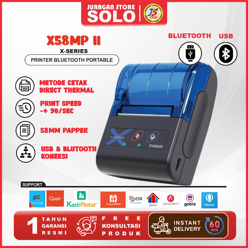 Mobile Printer Bluetooth Thermal 58mm Iware X58MP II Bluetooth RPP02N Portable