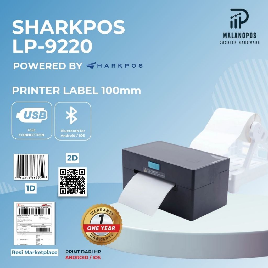 Printer Thermal Bare Resi Bluetooth USB Sharkpos LP-9220 LP9220 100 mm Label Resi A6 9220
