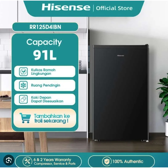 Hisense RR125D4IBN Kulkas Portable 1 Pintu 91 Liter . Baru & Bergaransi