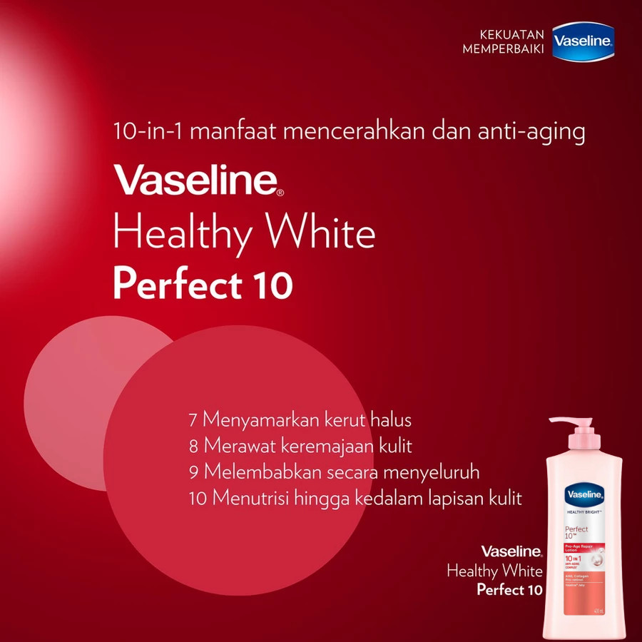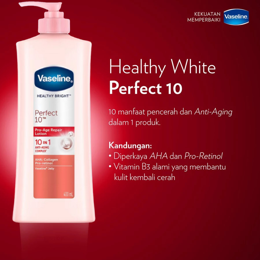 Vaseline Healthy White Bright UV Lightening Whitening Hand Body Lotion Perfect 10 400 ml
