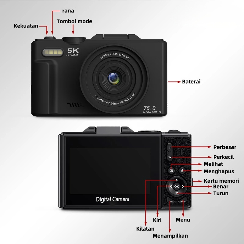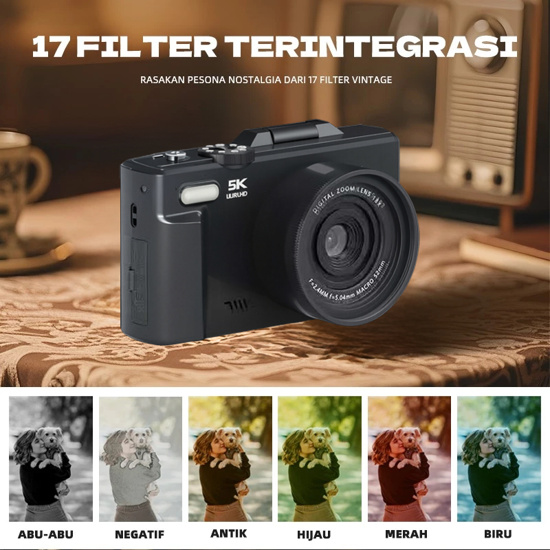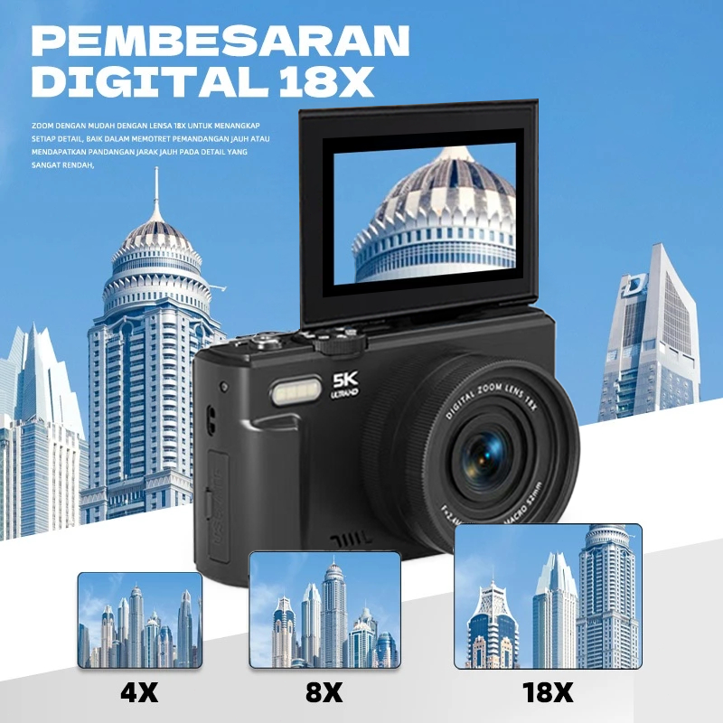 5K Kamera Digital WiFi Putaran 180° Zoom 18x kamera murah Dengan Dukungan Selfie Koneksi WIFI untuk Hadiah Pemula Retro Kamera digicam kamera anak anak bisa keluar foto
