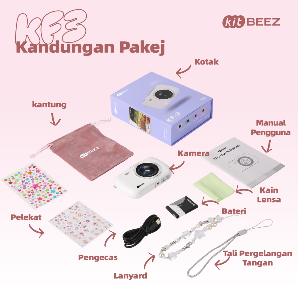 KiTBEEZ KF-3 Kamera Digital 64MP 18X 4K HD Vedio Macaron Kamera Kamera Murah Digital Camera With Flash Built-in Filters digicam kamera vlog kamera anak anak bisa keluar foto