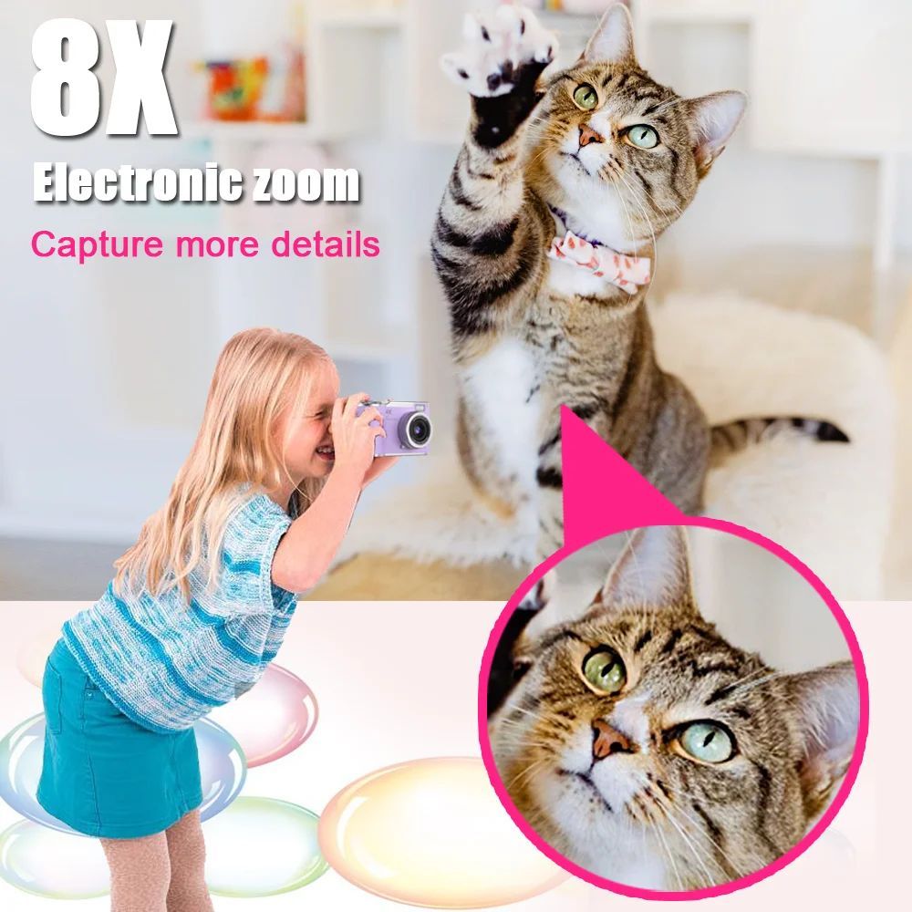 【Dengan kartu 64G】64/75MP 4K 8X Zoom Digital Kamera Digital Kompak Kamera Swafoto Layar Lipat 180° dengan Permainan Edukasi Kamera Digital Pelajar