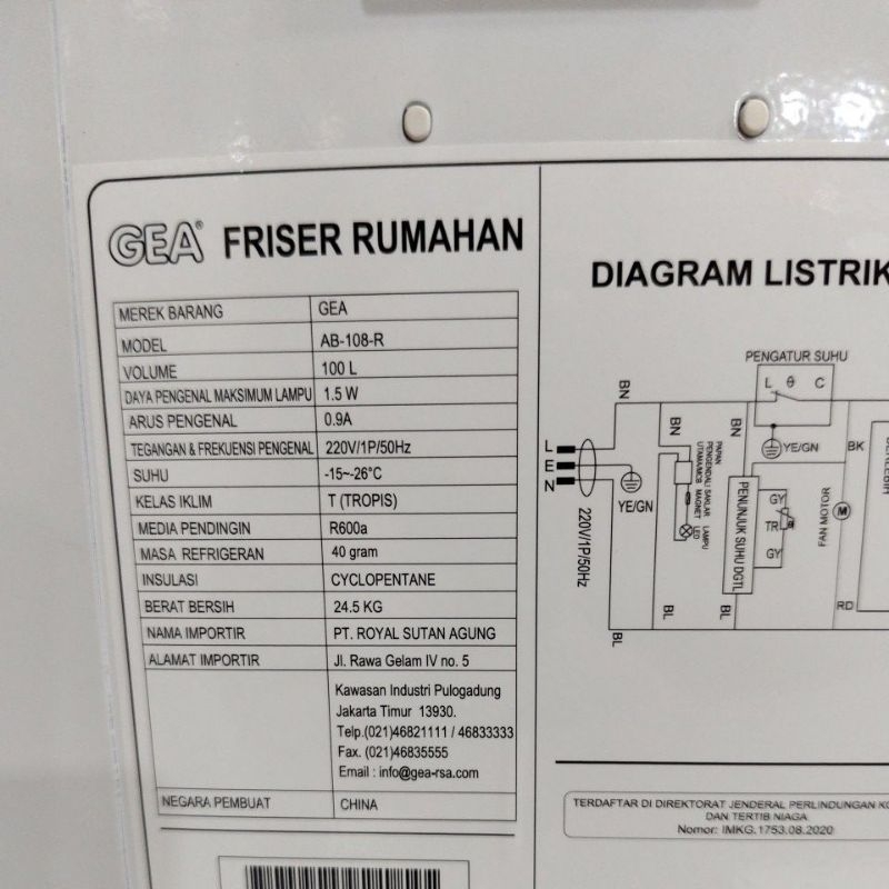 GEA AB 108 R CHEST FREEZER BOX 100L LEMARI PEMBEKU 100 LITER BY GEA