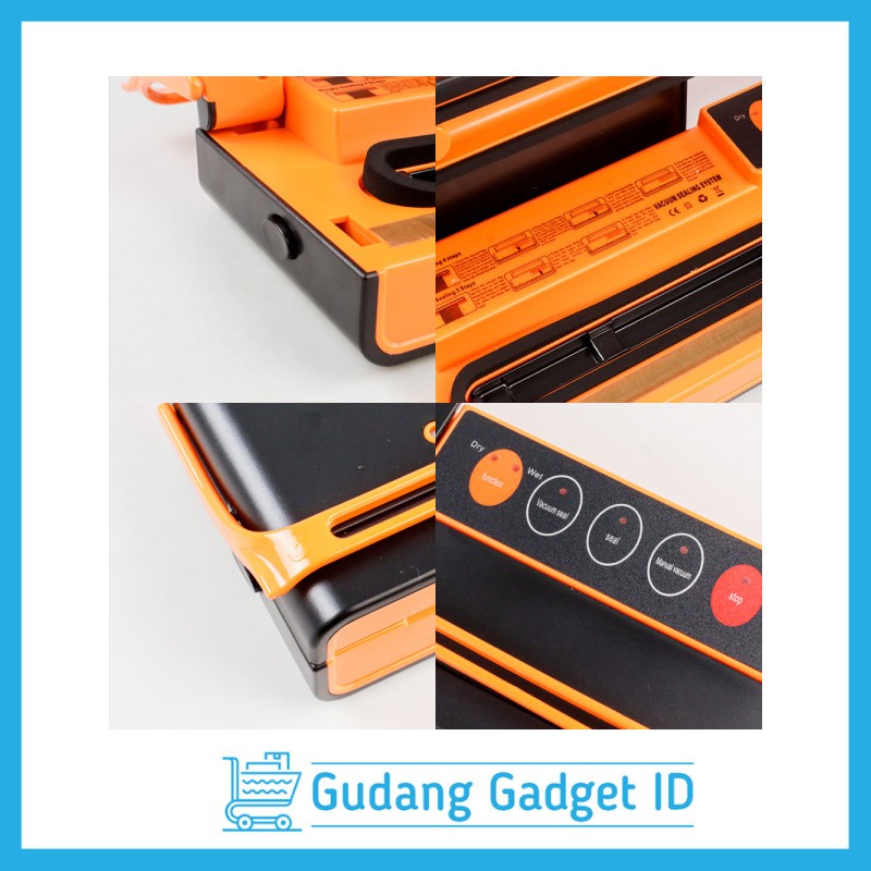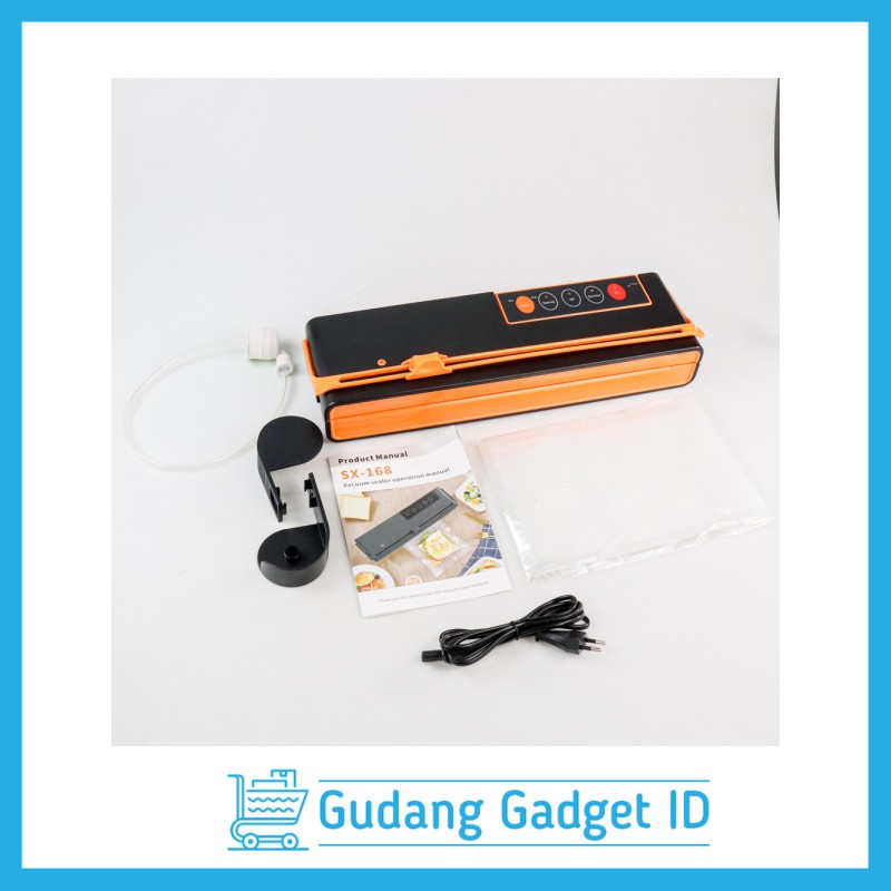 Vacuum Sealer Otomatis Makanan Basah Kering Food Sealer 10 Bags - SX-168 - Black/Orange - NXVOWAD8