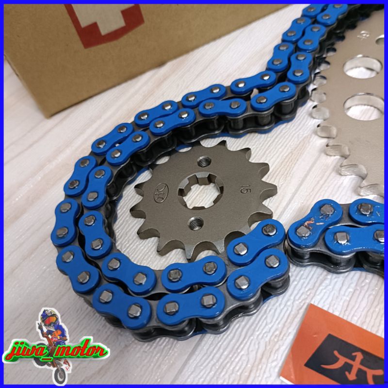 Gear set 428 WR 155 TK racing / SSS plus rantai BIRU VZM / EXPEDITION 428H panjang 140L