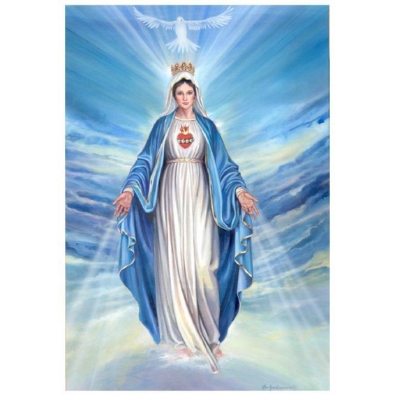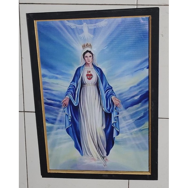 Hiasan dinding lukisan cetak Bunda Maria plus bingkai ukuran 65x45