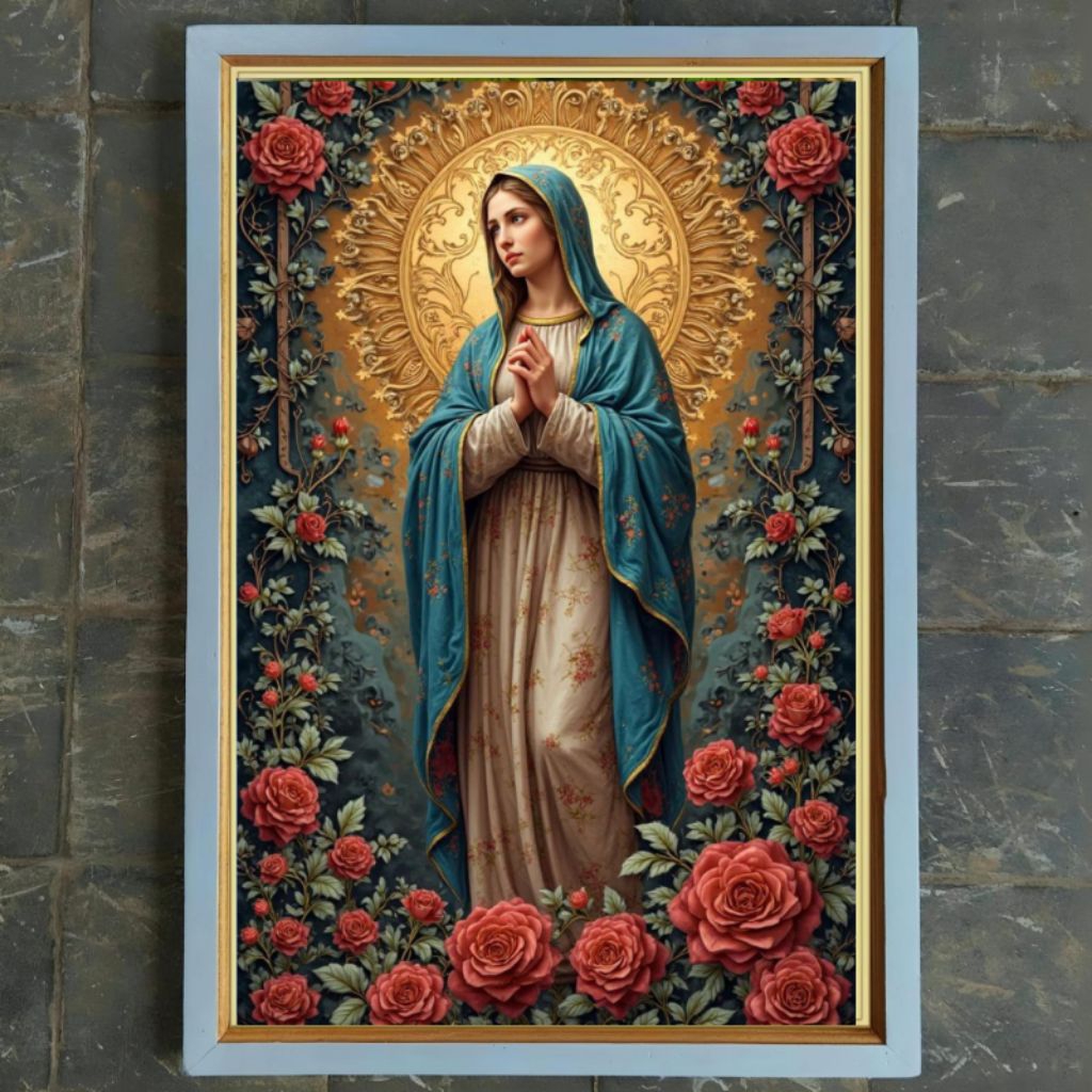 hiasan dinding lukisan cetak bunda Maria plus bingkai ukuran 8555