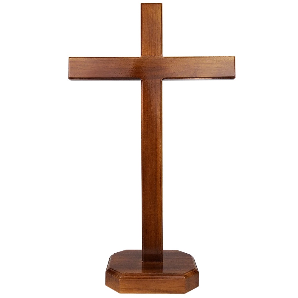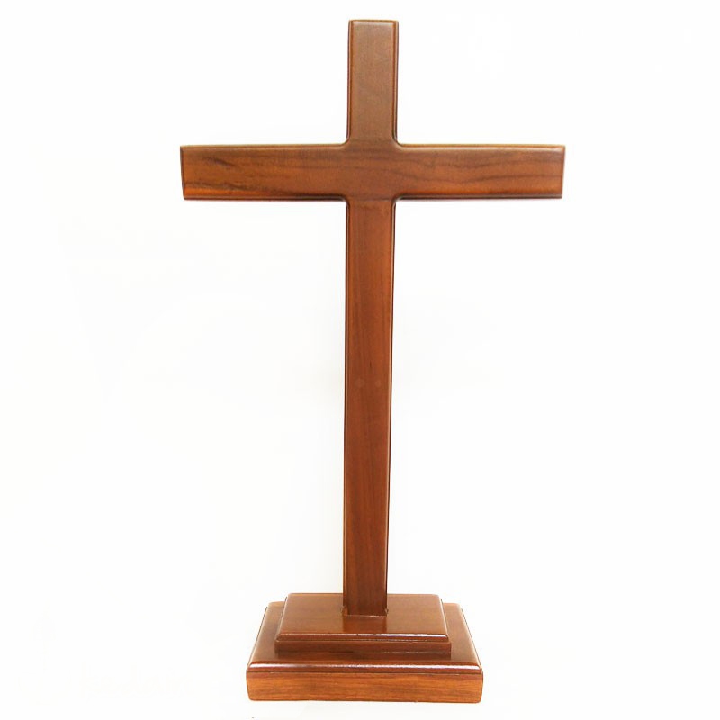 Salib Duduk Meja Kristen Kayu Jati Polos Tanpa Courpus Patung Yesus 40 cm